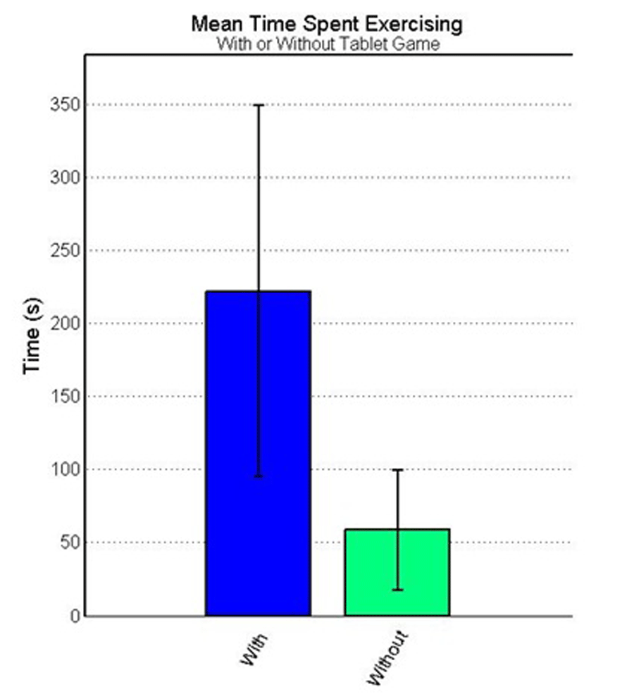 Figure 4. Participants were engaged with a video game facilitated exercise session four times longer than they were with an unaided exercise session.