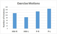 Figure 5. The amount of exercises that a participant was able to complete during 5 minute sessions with their arm suspended in the air with the HandMentor on their right arm (HM-R), Hand-Mentor on left arm (HM-L), prototype on right (P-R), and prototype on left (P-L).