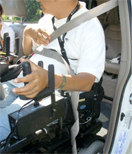 Safety and usage issues for wheelchair-seated drivers and passengers in private vehicles were assessed. Interference of wheelchair frames with occupant restraints, the vehicle interior and control systems were frequently observed. An inability to reach and operate seat belts and the unavailability of head restraints was often reported by subjects. As a result, seat belts are often misused, routed over armrests, or around clothing guards, or are not used at all. Another restraint issue observed and mentioned by subjects is that the seat belt tension is often too loose to provide effective postural support during driving. Postural instability can be aggravated by a bump in the road, an unexpected swerve or turn, resulting in an ineffectively restrained wheelchair occupant projecting sideways over the wheelchair armrest. In response to this need for postural support, two wheelchair seated drivers had made adjustments to their seatbelt system despite the fact that these adjustments could adversely affect the safety of their seatbelt system. Although wheelchair-seated drivers and passengers were often using improperly and poorly positioned and incomplete belt restraints and reported being unable to independently exit their vehicle in an emergency situation, most respondents reported feeling safe when driving or riding in their vehicles. Nevertheless, the observations made in this study, coupled with knowledge of what is required for effective occupant restraint and crash protection, have made it clear that improvements in seatbelt systems for wheelchair seated riders in private vehicles are badly needed. These improvements require not only innovative designs in passive (automatic) seatbelt systems but changes in the design of wheelchairs to reduce interference with proper seatbelt fit.