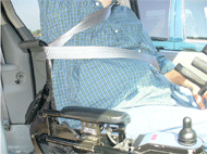 In addition, investigators observed poor belt fit in many cases; pelvic restraints were routed over the armrests, high over the abdomen or not used at all (Figure 2). Shoulder restraints, when used, were in some cases routed off the shoulder, or used without a pelvic restraint. Two subjects chose to hook the restraint around the armrest or seatback cane instead of buckling their seatbelt latch plate into the receiver. Ten subjects reported that they feel “safe” to “very safe” when rating driver safety and six subjects think that their safety in the vehicle “could be better”. On average passengers and drivers find it important to have an effective occupant restraint. When asking subjects what improvements could be made to their restraint system, subjects mentioned automatic, drive-in style (passive) occupant restraint systems and adjustable anchor points. Table 2 summarizes subject responses on what additional restraint improvements could be made.